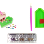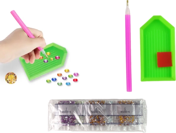 W zestawie znajdziesz różne kolory kryształków, które użyjesz do dekoracji naklejek. Powierzchnia naklejek jest pokryta warstwą kleju z numeracją do użycia kolorów. Kryształek przykładaj jeden po drugim, tworząc małe dzieło sztuki.