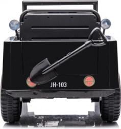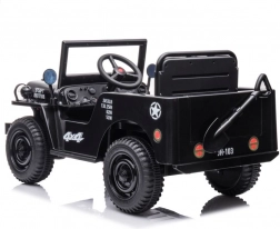 Odkryj radość z jazdy w czarnym dziecięcym autku 4x4, które oferuje wierne detale, takie jak kierownica, reflektory i lusterka boczne. Jego wytrzymała konstrukcja i stylowy wojskowy wygląd zapewnią godziny zabawy podczas kreatywnych przygód.