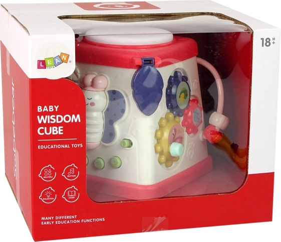 Ta kolorowa interaktywna kostka łączy kilka aktywności w jednym sprytnym zestawie. Każda ścianka rozwija inną umiejętność: od doskonalenia małej motoryki, przez stymulację słuchu i wzroku, po pierwsze słownictwo w języku angielskim. Dzięki żywym kolorom i przyjemnym dźwiękom dzieci pokochają zabawę od pierwszej chwili.