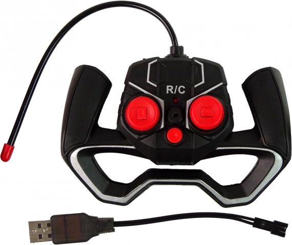 Sterowanie jest proste i wciągające: prawą gałką/pokrętłem skręcasz, lewą wybierasz kierunek jazdy do przodu i do tyłu. Gumowe opony zapewniają świetną przyczepność, a sprężynowe amortyzatory tłumią wstrząsy. Zintegrowany akumulator ładowalny i ładowarka USB minimalizują koszty eksploatacji.