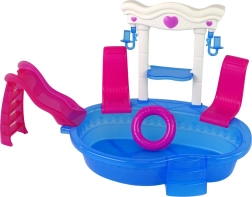 Zestaw zawiera również zjeżdżalnię, którą dzieci uwielbiają! Akcesoria takie jak fioletowe napoje i różowe klapki podkreślają atmosferę letniej zabawy. Dodatkowo jest tam pływający koło, który dodaje dodatkowe możliwości do zabawy.