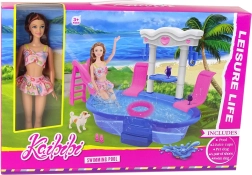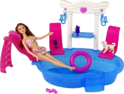 Przedstawiamy lalkę z interaktywnym zestawem do zabawy, który zawiera wszystko, co jest potrzebne do przygód przy basenie. Piękny niebieski basen o wymiarach 26 cm x 34 cm x 23,5 cm jest idealny do napełnienia wodą i tworzy przestrzeń dla wodnych opowieści. W wyposażeniu znajdziesz również dwa różowe leżanki, gdzie lalka i jej psia przyjaciółka znajdą komfort.
