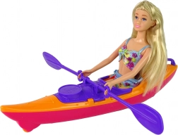 Realizm zabawie dodaje również niebieska kamizelka ratunkowa, która chroni podczas przygód na wodzie, i fioletowe wiosło, którym kajak można wprawić w ruch. Cały zestaw wykonany jest z trwałego plastiku, co gwarantuje jego długą żywotność.