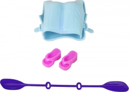 Zestaw zawiera również niebieską kamizelkę ratunkową, różowe sandały i fioletowe wiosło dla realistycznego doświadczenia.
