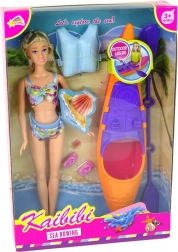 Odkryj wspaniały zestaw, który zawiera urokliwą lalkę gotową na wodne eskapady. Jej kolorowy strój kąpielowy dodaje letniej atmosfery, a jej długie blond włosy pięknie lśnią na słońcu. Różowe sandały dodają uroku całemu stylowi.