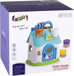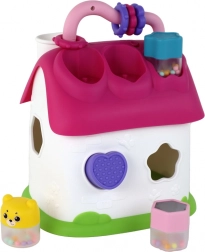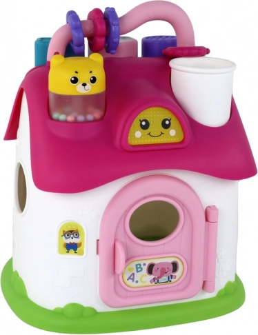 Domek ma cztery różne otwory w dachu do sortowania według kształtu i koloru oraz otwierane kolorowe drzwi. Na dachu znajduje się okno z uśmiechniętą buzią, które świeci i wydaje dźwięki, wspierając interakcję i zaangażowanie dziecka.