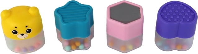 Cztery różne otwory do sortowania kształtów i kolorów, wspierające rozwój rozpoznawania kształtów i barw.
