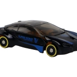 W formie auta robot staje się futurystycznym pojazdem z żółtymi felgami i niebieskimi detalami, które przyciągają uwagę.