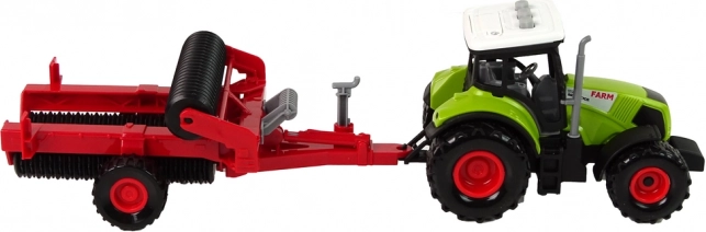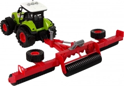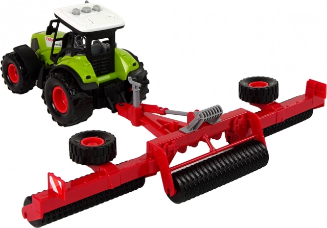 Ręczny napęd umożliwia jazdę do przodu i do tyłu, a trzy tryby dźwięku (cofanie, trąbienie, ruszanie) oraz wbudowane światła dodają zabawie autentyczności. Kultywator można łatwo podłączyć do traktora, a jego ruchome elementy imitują prawdziwe narzędzia rolnicze.