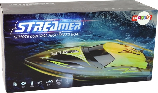 Nowoczesna aparatura 2,4 GHz zapewnia płynne sterowanie bez zakłóceń, obsługuje jednoczesną pracę wielu łodzi oraz oferuje funkcję autopilota i wybór prędkości.