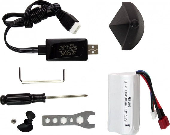 - Ready to Run: wszystko w zestawie – łódź, akumulator, kabel ładowania, narzędzia, stojak i zapasowa śruba.