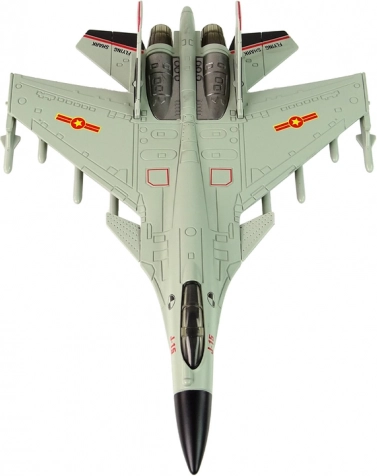 Model wykonany jest w autentycznym szarym kolorze, co dodaje realizmu prawdziwemu samolotowi myśliwskiemu. Dzieci i dorośli będą pod wrażeniem jego wspaniałego wyglądu. Gumowe koła umożliwiają płynne poruszanie się po różnych powierzchniach.