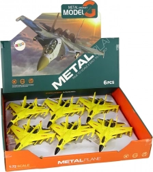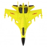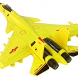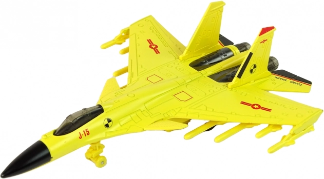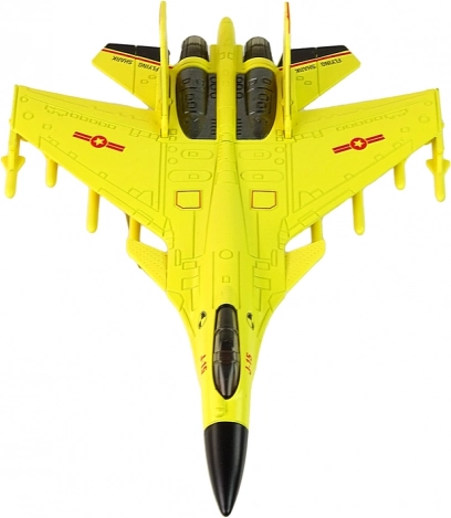 Elegancki żółty design: Samolot został wykonany w autentycznym żółtym kolorze, przypominającym prawdziwy myśliwiec. Wyposażony jest w gumowe kółka, umożliwiające płynny ruch po różnych powierzchniach.