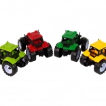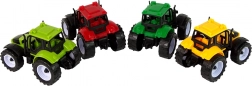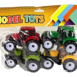 Zestaw zawiera traktory w czterech kolorach: ciemnozielonym, jasnozielonym, pomarańczowym i czerwonym.