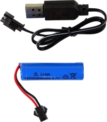 W zestawie akumulator 14500/500 mAh 3,7 V, który umożliwia długą zabawę i łatwe ładowanie.