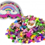 Zestaw kolorowych koralików do tworzenia biżuterii DIY to doskonały wybór dla każdego, kto kocha tworzyć unikalne ozdoby. Ten różnorodny komplet zawiera plastikowe koraliki w różnych kształtach i kolorach, które pozwalają tworzyć oryginalne i osobiste projekty.