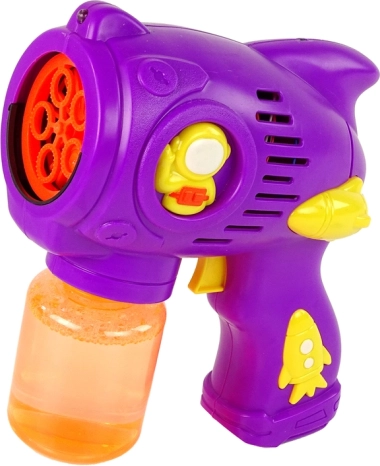 Ten pistolet do baniek, zaprojektowany w intensywnym fioletowym kolorze, oferuje dzieciom zabawną i wizualnie atrakcyjną rozrywkę, przenoszącą je do świata fantazji.