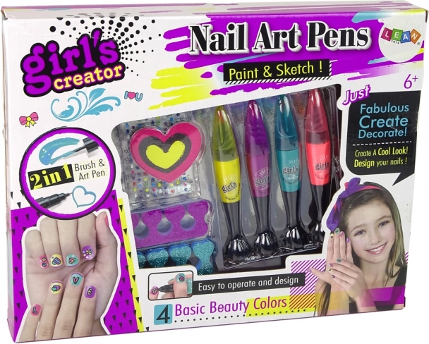 Stwórz w domu własny mini salon! Ten zestaw do malowania paznokci dla dzieci oferuje wszystko, czego mała stylistka potrzebuje: 4 kolorowe flamastry do precyzyjnego zdobienia, pilniczek w kształcie serca oraz wygodne separatory palców. Bezpieczny, nietoksyczny skład jest łagodny dla dziecięcych paznokci i spełnia normę EN71.