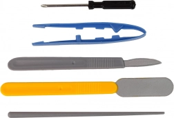 - mikroskop, pęseta, gotowy preparat, 2 szkiełka podstawowe, 2 probówki, pudełko, śrubokręt