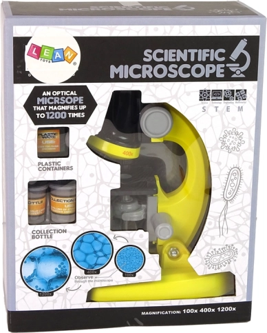 Odkryj mikroświat z tym mikroskopem dla dzieci w intensywnie żółtej wersji. Oferuje powiększenie 100×/400×/1200×, łatwe ostrzenie i bogaty zestaw akcesoriów do pierwszych eksperymentów. Idealny zestaw edukacyjny dla dzieci od 8 lat – pobudza ciekawość, koncentrację i radość z odkrywania.