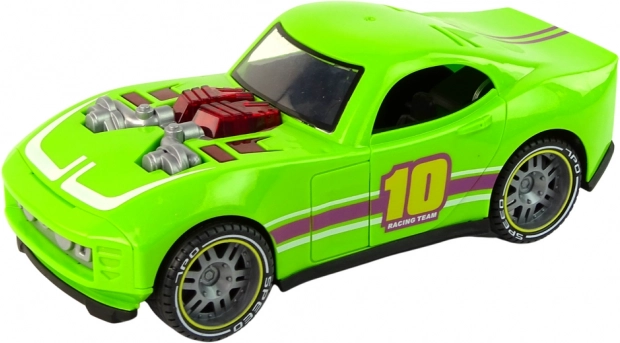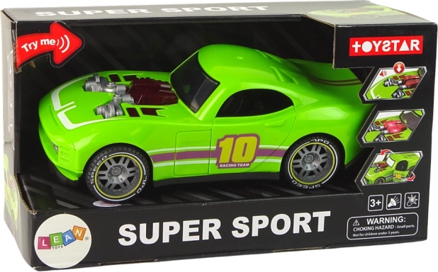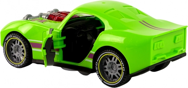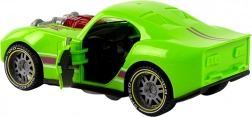 Zabawny zielony samochód sportowy w skali 1:14 ucieszy małych kierowców: oferuje efekty świetlne i dźwiękowe, otwierane drzwi oraz napęd na mechanizm sprężynowy (friction) dla dynamicznej jazdy. Dla dzieci od 3 lat, zasilanie 2× AAA (brak w zestawie), certyfikaty CE i EN71.