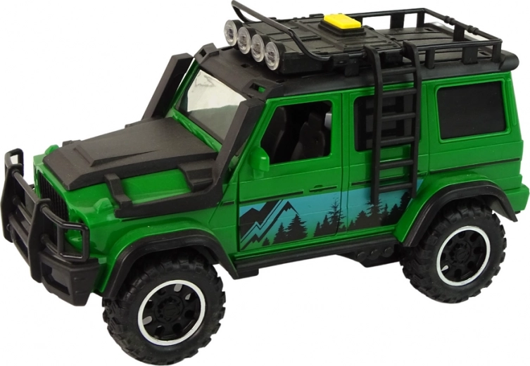 Ten samochodzik to przepustka do świata wyobraźni i odkrywania. Pojazd przyciąga uwagę już na pierwszy rzut oka swoim imponującym wyglądem. Na drzwiach ma motyw lasu i gór. Gumowe koła gwarantują możliwość jazdy po różnych nawierzchniach, a dopracowane detale nadają wyjątkowy realizm.
