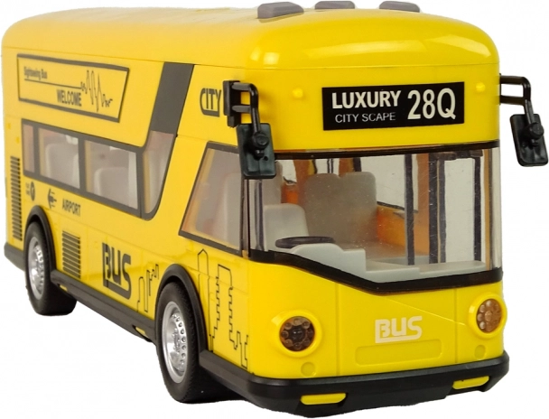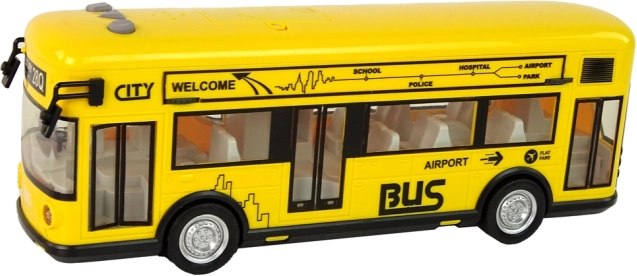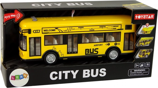 Ten szczegółowo wykonany żółty autobus zapewnia dzieciom realistyczne doświadczenie transportu miejskiego. Dzięki efektom świetlnym we wnętrzu oraz autentycznym dźwiękom jazdy i miasta zabawa jest jeszcze bardziej angażująca. Otwierane drzwi sterowane małym kółkiem zębatym pobudzają wyobraźnię i scenki z pasażerami.