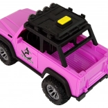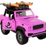 Poczuj letni klimat z różowym samochodem off‑road w tematyce surfingu. Realistyczne detale, duże koła i napęd bezwładnościowy zapewniają płynną jazdę, a światła i dźwięki zamieniają każdą przejażdżkę w przygodę. Deski i wiosła na bagażniku dachowym pobudzają wyobraźnię i zachęcają do plażowych historii.