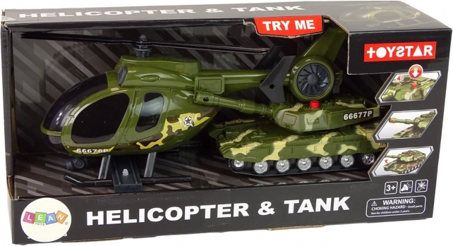 Zestaw zawiera czołg i helikopter w spójnym kamuflażu – gotowe do akcji od razu po wyjęciu z opakowania.