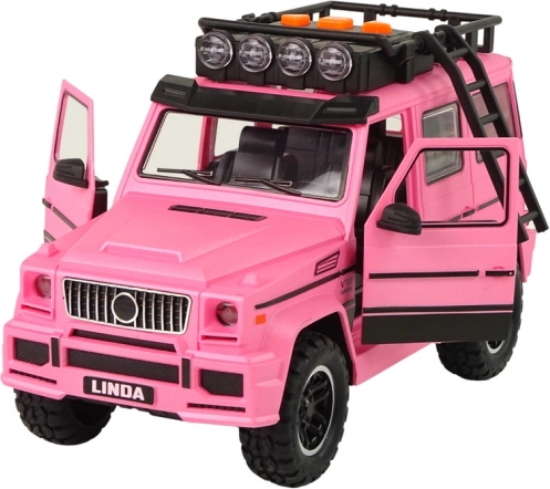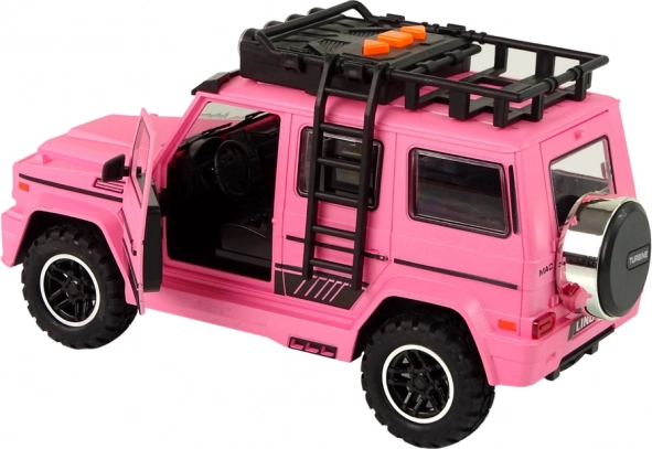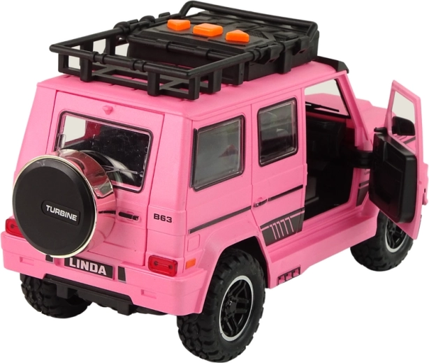 Samochód ma urocne różowe wykończenie, które nadaje mu przyjazny i zabawny wygląd.