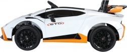 Nadwozie w białym kolorze z pomarańczowymi akcentami, funkcjonalne przednie światła i dopracowane koła tworzą wrażenie prawdziwego LAMBORGHINI STO.