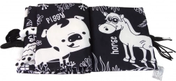 Odkryj magię przyjaciół zwierząt z tą książką tekstylną dla małych dzieci. Książka przedstawia każde zwierzę z farmy poprzez kontrastowe czarno-białe ilustracje, które pomagają rozwijać wzrok i wczesny zasób słownictwa.