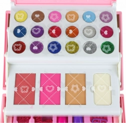 Dla pełnego komfortu podczas makijażu zestaw zawiera praktyczne akcesoria, takie jak 3 różowe pędzelki do cieni, pędzel do makijażu oraz pędzelek do brwi. W komplecie znajdują się także akcesoria do zdobienia paznokci: różowy brokatowy separator kosmetyczny oraz pilnik do paznokci. 3D zawieszki/ozdoby na paznokcie dołączone do kuferka umożliwiają unikalne, spersonalizowane zdobienia.