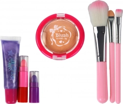 W skład zestawu wchodzi 6 pięknych kolorów cieni do powiek, które pozwalają eksperymentować z barwami i łączyć odcienie w unikalne kompozycje. Dwa różne pędzle i aplikatory ułatwiają precyzyjne nakładanie kosmetyków, a róż dodaje twarzy zdrowego i promiennego wyglądu. Do wykończenia makijażu zestaw zawiera także błyszczyk z drobinkami oraz 2 modne pomadki w kolorze fioletowym i różowym, które nadają ustom piękny odcień i delikatny połysk.