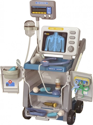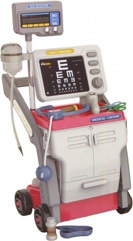 - Mobilne stanowisko, stetoskop na baterie, strzykawka, nożyczki, dekoracyjne naklejki oraz inne akcesoria lekarskie