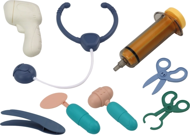 Zestaw zawiera wszystko, co potrzebne do podstawowej „przychodni”: strzykawkę, nożyczki, stetoskop i inne akcesoria. Został wyprodukowany z myślą o bezpieczeństwie i spełnia normy CE oraz EN71, dzięki czemu nadaje się dla dzieci od 3 lat.