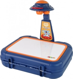 Ten interaktywny projektor do rysowania w poręcznej, niebieskiej walizeczce pozwala dzieciom wyświetlać obrazy z tematycznych tarcz (zwierzęta, ubrania, piłki, owoce, warzywa, środki transportu) na białą powierzchnię i łatwo je odrysowywać. Regulowana podstawa pomaga dopasować wysokość projekcji, aby rysunek był zawsze wygodny i wyraźny.
