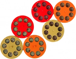 Sześć wymiennych tarcz z tematami takimi jak zwierzęta, owoce, warzywa czy transport zapewnia nieskończoną inspirację.