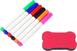 W komplecie 6 kolorowych mazaków i gąbka do szybkiego wymazywania, dzięki czemu tworzenie jest czyste i powtarzalne.