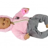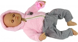 Mięciutka różowa bluza i szare spodnie w kropki nadają lalce autentyczny i uroczy wygląd, który dzieci szybko pokochają.