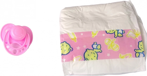 W zestawie znajduje się smoczek do uspokajania niemowlęcia oraz pieluszka do przewijania – idealne do rozwijania odpowiedzialności, empatii i umiejętności społecznych. Zabawa lalką wspiera wyobraźnię i naśladowanie codziennych sytuacji.