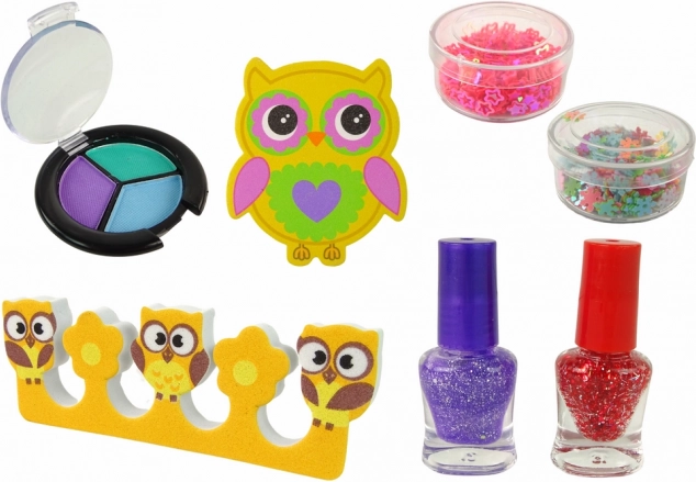 Kreatywny zestaw do makijażu i zdobienia paznokci Sowa oferuje wszystko, co potrzebne do stworzenia magicznej atmosfery i stylowych wzorów. Zawiera lakiery do paznokci, pilniczek, ozdobne naklejki oraz wiele innych ciekawych elementów.
