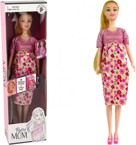 Ta piękna ciężarna lalka z długimi blond włosami i uroczą różową sukienką w kwiaty wnosi do zabawy magię i styl. Brzuszek można łatwo obrócić na płaski. Idealna dla dziewczynek, które kochają lalki i tworzenie magicznych historii.