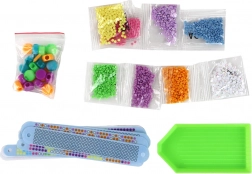 Kolorowe koraliki, kamyczki, paseczki oraz praktyczna zielona tacka ułatwiają pracę i utrzymują czystość na stanowisku.