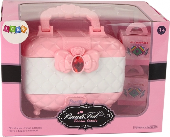 - Różowo-biały kuferek z kokardką i lusterkiem