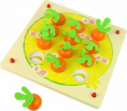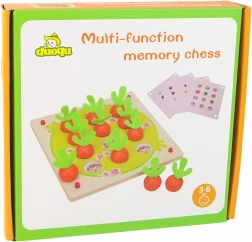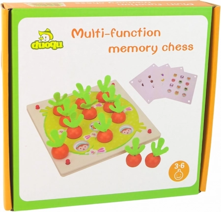 Ta wysokiej jakości drewniana gra wspiera koncentrację i trenuje pamięć w atrakcyjny sposób. Dzieci umieszczają urocze figurki owoców i warzyw w odpowiednich otworach według wybranego szablonu i wyszukują pasujące pary. Solidne wykonanie gwarantuje długą żywotność i bezpieczną zabawę.