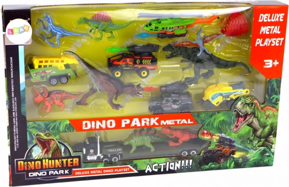 Ten barwny zestaw przeniesie dzieci do świata prehistorycznych ekspedycji. Trzy szczegółowo wykonane pojazdy z przyczepami umożliwiają łatwy transport dinozaurów w terenie, dwa auta mają obrotową wieżę z wyrzutnią dla dodatkowej dawki akcji. Helikopter zachwyca możliwością wymiany wyrzutni na siatkę transportową, aby bezpiecznie przenosić dinozaury z powietrza.