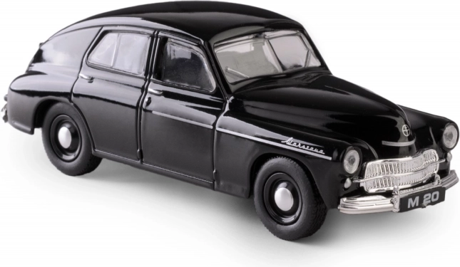 Odkryj legendę polskich dróg w eleganckim czarnym wydaniu. Ten metalowy model WARSZAWA M20 w skali 1:43 wiernie oddaje klasyczne linie, chromowane detale i charakterystyczny grill z oznaczeniem M20. Solidna konstrukcja die‑cast z plastikowymi elementami gwarantuje wytrzymałość i długą żywotność podczas ekspozycji oraz lekkiej zabawy.