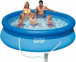 Praktyczny basen naziemny INTEX Easy Set to idealny wybór do ogrodu – w kilka minut gotowy do napełnienia, stabilny dzięki nadmuchiwanemu kołnierzowi i wykonany z trwałego, trójwarstwowego PVC. Pojemność 3 853 litrów zapewnia dużo miejsca na orzeźwienie dla całej rodziny.