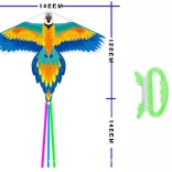 Ten wielkoformatowy latawiec w kształcie egzotycznego ptaka zachwyca wyrazistymi kolorami i długimi wstęgami, które tworzą efektowny ślad na niebie. Wykonany z wytrzymałego i lekkiego nylonu, radzi sobie z typowymi warunkami pogodowymi, a dzięki szerokiej rozpiętości skrzydeł zapewnia stabilny i płynny lot.